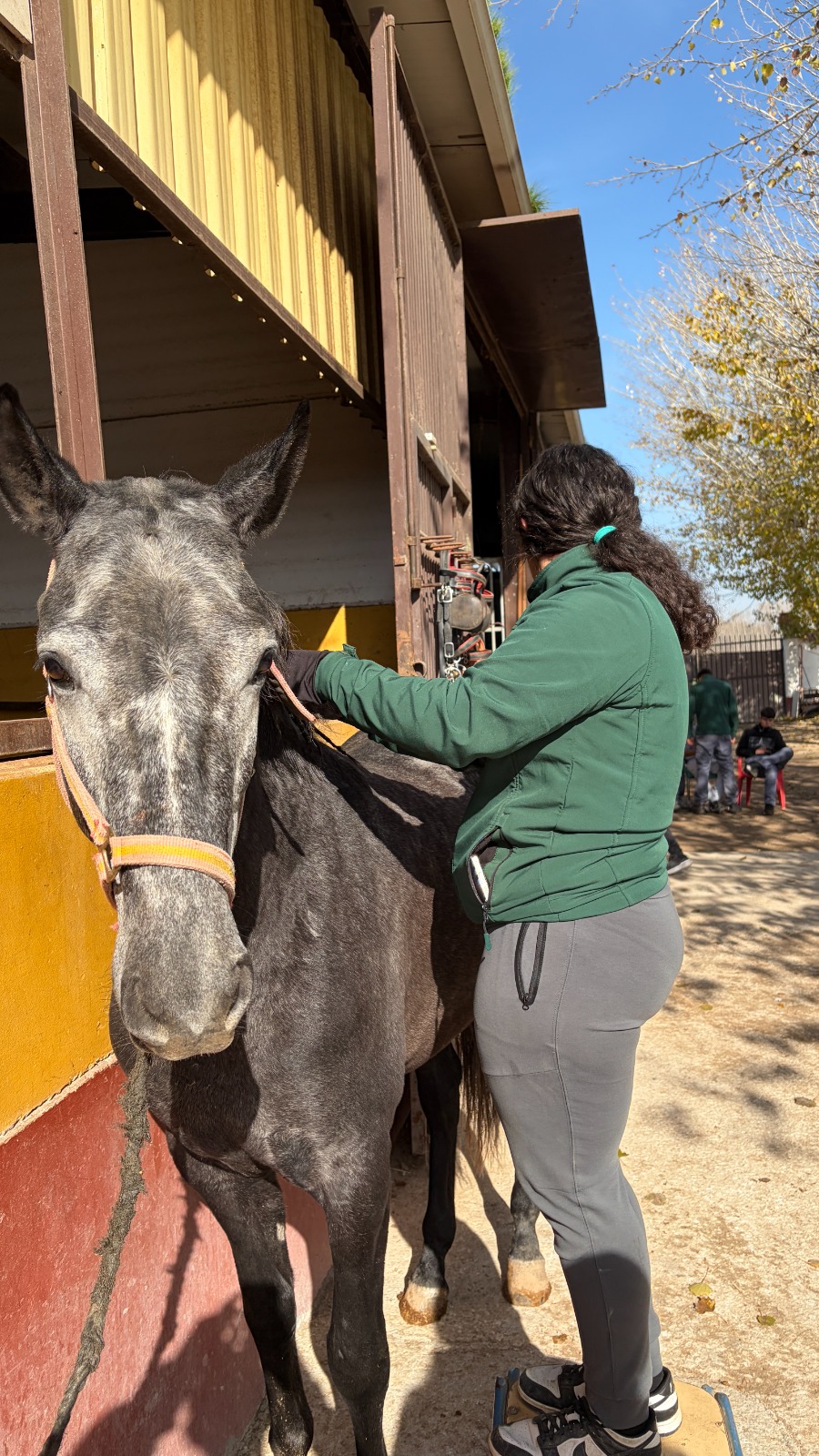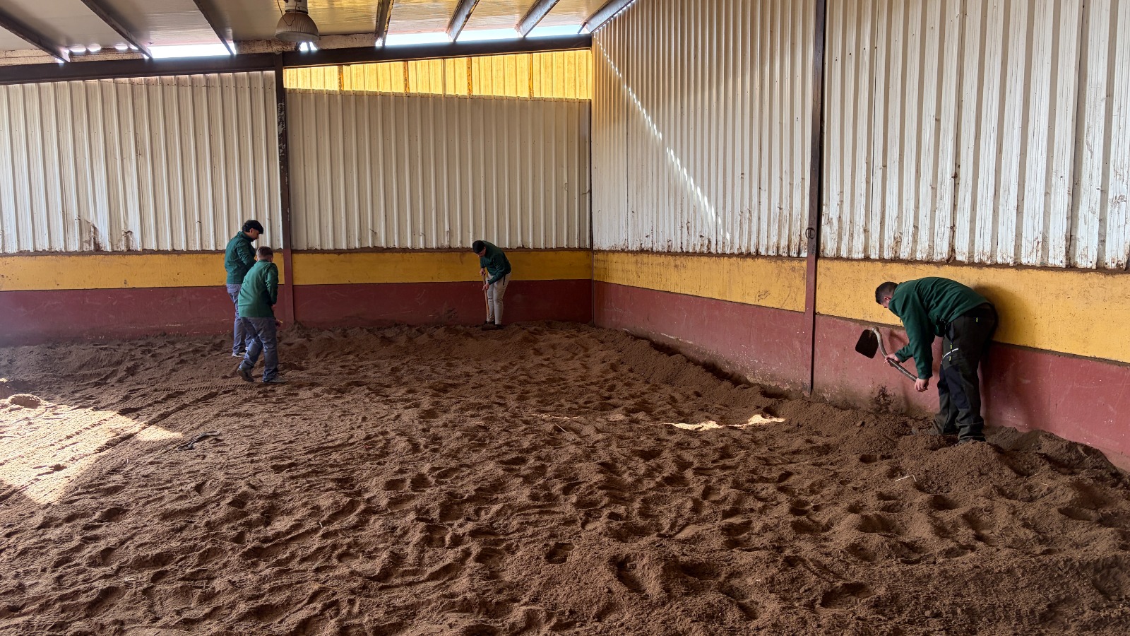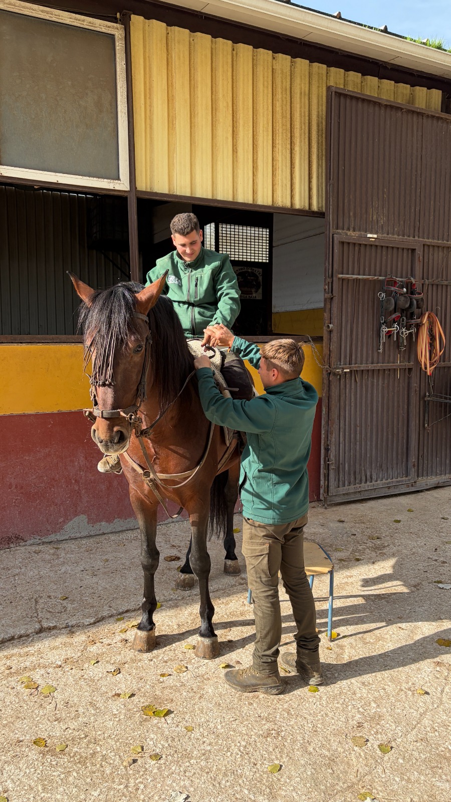 Durante la jornada, los estudiantes colaboraron activamente con los responsables del centro ecuestre en diversas tareas esenciales para el correcto funcionamiento de las instalaciones. Entre ellas, realizaron labores de preparación y acondicionamiento de la pista de entrenamiento, limpieza y organización de las cuadras, así como cuidado directo de los caballos, participando en su limpieza y peinado con una actitud responsable y respetuosa hacia los animales.