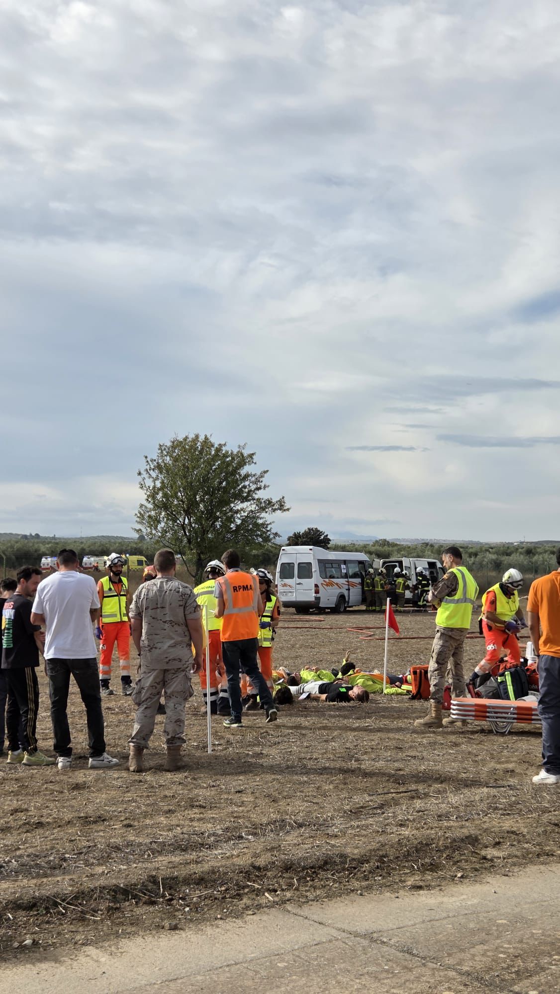 heridos graves 4 Rojos y 6 Amarillos y por desgracia 10 fallecidos, organizado en el Aeropuerto Federico García Lorca Granada-Jaén. En esta actividad, nuestros alumnos desempeñaron el papel de víctimas, colaborando estrechamente con los equipos de emergencias -bomberos, sanitarios, Protección Civil y Guardia Civil, etc- que intervinieron en la simulación.