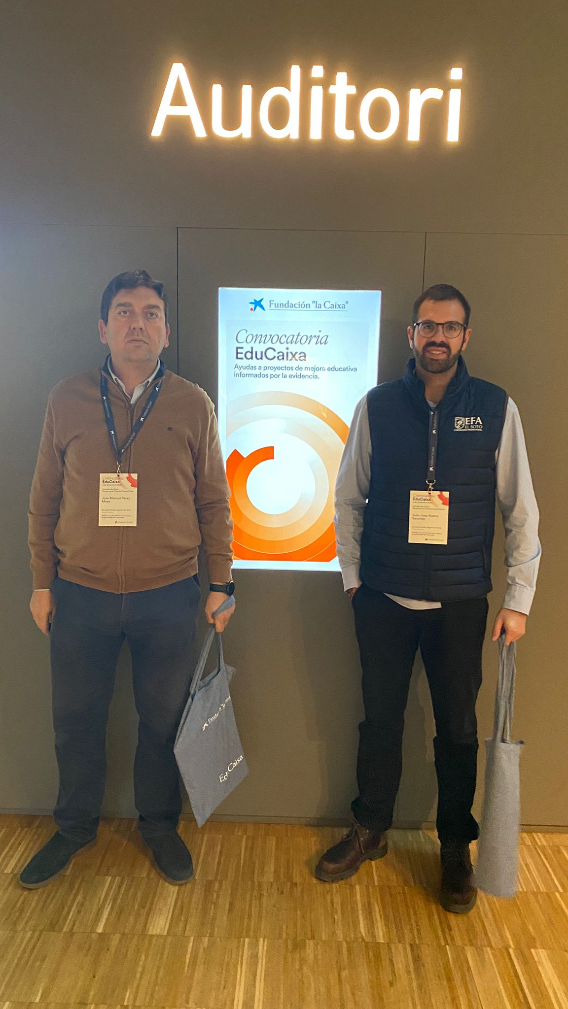 Posteriormente, los días 1, 2 y 3 de diciembre de 2025, el director y el profesor responsable del proyecto participaron en las jornadas de EduCaixa celebradas en Barcelona, donde el centro presentó el póster de resultados en el Museo de la Ciencia CosmoCaixa. La jornada central, desarrollada el 2 de diciembre, incluyó la bienvenida institucional, una ponencia del Comité Científico sobre la continuidad de los proyectos, la exposición de pósteres y una ceremonia de clausura con mesa redonda y entrega de diplomas. La intervención de la EFA El Soto generó un gran interés entre los asistentes, especialmente entre los miembros del Comité Científico, quienes felicitaron al equipo por el enfoque innovador, la claridad de los resultados y el impacto potencial del proyecto en el ámbito de la Formación Profesional Básica.